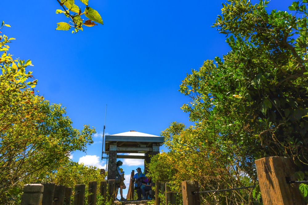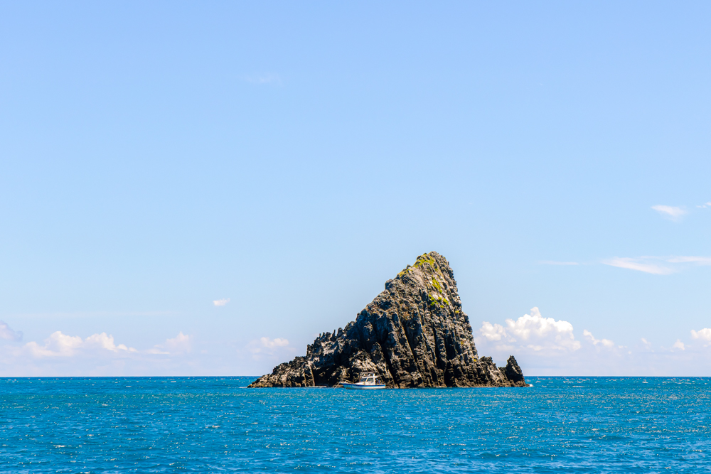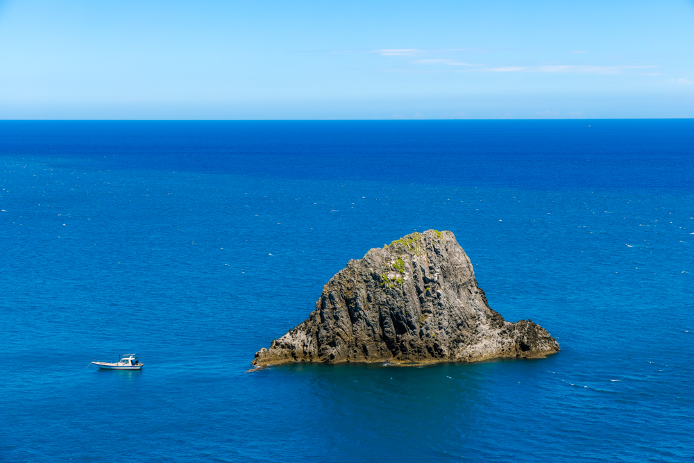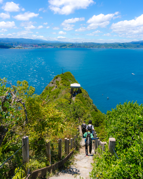 Your 20min slog brings you to a small pavilion. Commanding a breezy spot on the islet’s rocky spine, this is the trail’s only shaded rest area, and on this hot summer’s day, it was packed with hikers trying to cool down. From here, it takes another 20min to make it to the lighthouse via a rockier, rougher, but slightly less steep section. Along the way, the path wiggles around an intriguingly frog-shaped rock, perched in such a way as to give the impression that the oversized anuran is preparing to leap into the deep. There’s also a viewing deck at the island’s highest point, 182m above the shimmering surface of the ocean.