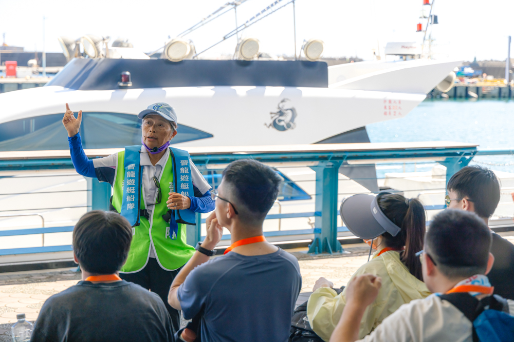 Arriving at the harbor at 9 o’clock sharp, we made our way to Jin Long Yacht Club’s counter to check in and receive our boarding passes, in the form of lanyards. There followed a safety talk and explanation of the morning’s plan (Mandarin only, as was the rest of the tour content), then we were each handed life jackets before being walked two-by-two in preschool crocodile formation past the coast guard station and on towards our vessel.