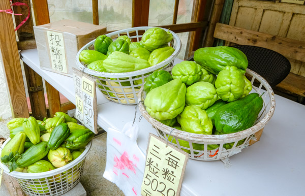 Today, a visit to the older Old Street feels like stepping back in time. Many of the buildings lay dormant, dust gathering in the interiors and weathered timber seeming to daydream of returning to the forest. Daguma Alishan Coffee fits perfectly with this sleepy atmosphere. A former general store, it bears characters dating its construction to the third year of the Taisho Era (1914), and its scuffed, mismatched furniture lounges beneath bamboo-supported awnings. When I visited, gentle instrumental versions of popular old songs floated out from speakers, punnets of chayotes sat beside an honesty box, and an elderly black dog dozed on the porch.