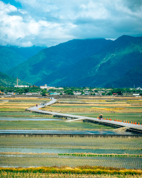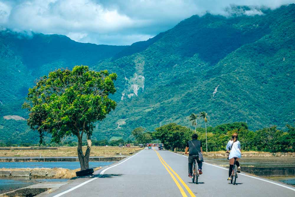 Chishang’s most famous spot, Brown Avenue, is an idyllic lane through the rice paddies featured in a Mr. Brown coffee advert and a subsequent EVA Air ad starring Taiwanese-born Japanese heartthrob Takeshi Kaneshiro. In the latter, Kaneshiro pauses from a bike ride to drink tea under a solitary tree (now named after him) in a scene that really put Brown Avenue on the map, bolstered by a 2017 visit by famous singer Jolin Tsai. Now popular with visitors almost every day of the year, the eastern end of the avenue is denoted by a giant picture frame where you can pose with the iconic road in the background. Whilst undoubtedly beautiful, riding along the avenue, you’ll need to be careful not to run into any selfie-taking tourists, and for those seeking solitude, there are plenty of other picture-perfect lanes through the paddies that you can enjoy without the crowds. Paradise Road runs southeast off Brown Avenue and is equally as magical, but slightly less popular. Other attractions to look out for include the Huge Waterwheel, the Grand View Pavilion, and the Jinyuan Laundry Pavilion. But also make sure you make time to just meander and see where the road takes you!
