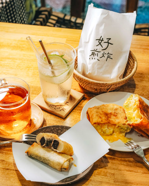A few minutes’ walk away on Zhongshan Road, Goodfrying is a tiny café with a limited menu, but its salty spring-roll wraps pack big flavor! The basic filling is cabbage and egg, with additional choices of surf & turf or double cheese, which is deep-fried to crispy perfection. The fried rice cake is also worth trying, perhaps accompanied by a hot chocolate or milk tea. You could take your food away with you to eat as you explore, but these snacks are best enjoyed when they’re hot, so if there’s a table free, it’s recommended to dine in. The young owners are very friendly and have aesthetically decked out the café with simple wood furnishings.