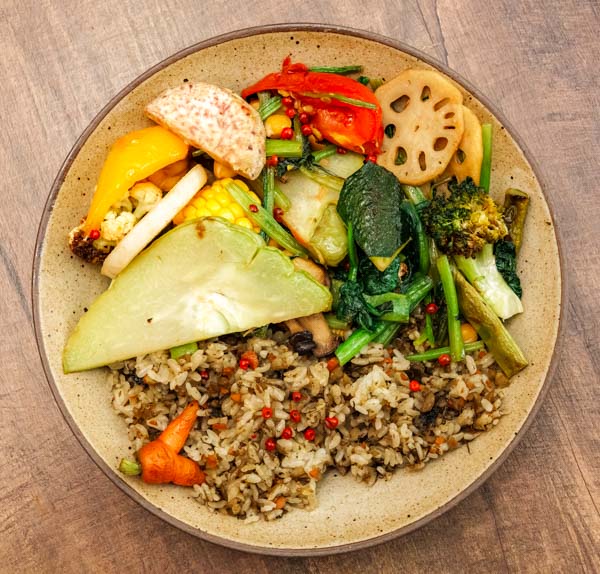 In terms of food, this translates to thoughtful dishes celebrating fresh, local, seasonal produce. The signature main is a rice bowl – a vegetable medley, which includes over a dozen plants: bright string beans, crisp slices of lotus root, crunchy and juicy chayote, rich taro, succulent radish, and a characterful carrot, all lightly roasted so as to coax out their innate sweetness and personalities. This bounty sits beside a mound of organic brown rice from Chishang Township, flavored to perfection with a savory spice mix, with vibrant pops from fresh red peppercorn tying the plate together visually. Simple though it may be, there is something orchestral in the way the components combine to form something greater than their individual parts, and I know it sounds a little silly to say this, but I hadn’t tasted such delicious, distinctively “vegetabley” vegetables in a long, long time.